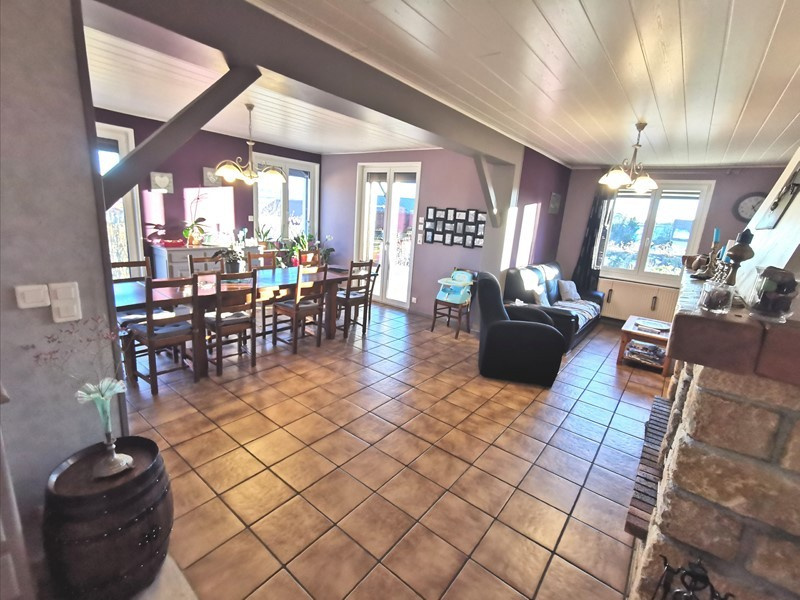 Axe Champagnole/Pontarlier, 35 mn de la Suisse, 5 mn Gare TGV, dans un Village recherché avec Ecole et petits commerces, ce Pavillon d'Artisans de qualité saura vous séduire par son bel espace de vie, sa fonctionnalité et sa luminosité, comprenant : au 1er en demi étage : Entrée - Cuisine aménagée et équipée semi ouverte, avec accès terrasse plein sud - Salle à manger et Salon avec cheminée (42 m²) ouvert sur terrasse plein sud - 1 Chambre avec placard - Bureau - Salle de bains + Douche) - WC. A l'étage : 3 Chambres dont l'une dispose d'un cabinet de toilette avec WC. 1 Dégagement permettant l'aménagement d'une Salle d'eau ou d'un Dressing. Sous-sol complet avec Garage 3 voitures (porte électrique) - Cave - Buanderie/Chaufferie - Atelier. Informations complémentaires : Toutes ouvertures triple vitrage - Panneaux solaires - Volets roulants électriques - Isolation extérieur ''Canexel'' - Plancher chauffant au 1 er étage - Assainissement raccordé. DPE '''D''. Prix demandé : 330 000 euros. Contact Agence AS Habitat Alain THIEBAUD Tél : 06 84 11 46 85 / 03 84 42 48 35