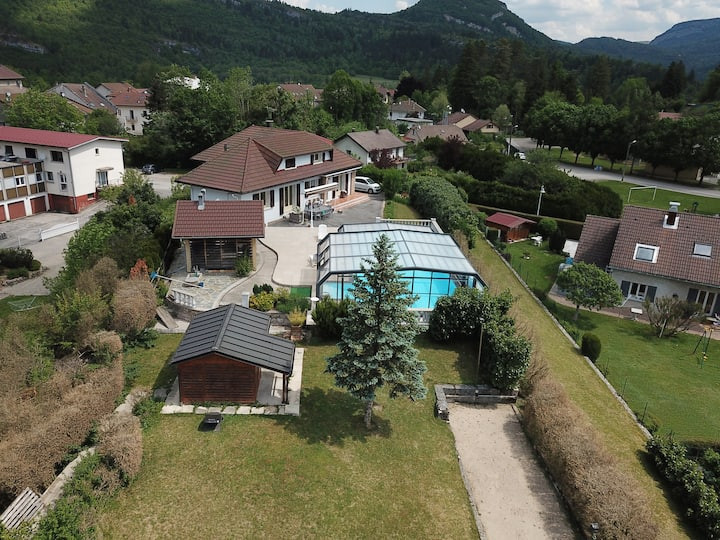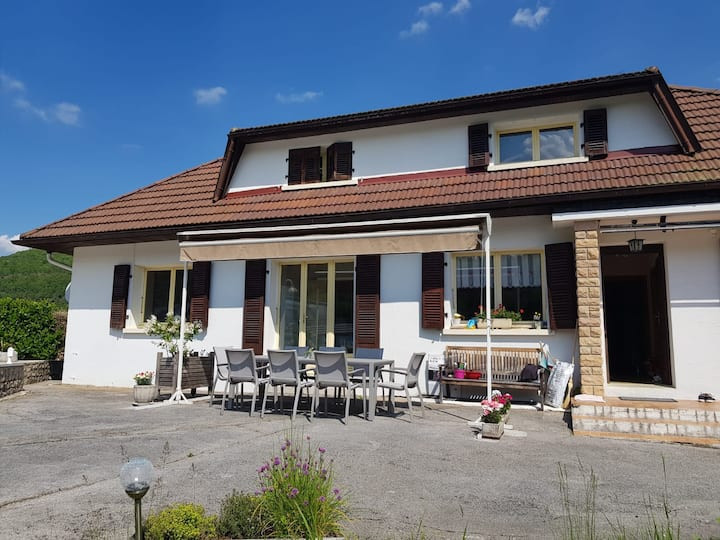 A 15 min d'Oyonnax, dans le village de Molinges, Villa de 200 m2 habitable, avec de superbes dépendances et une jolie vue sur la nature environnante.