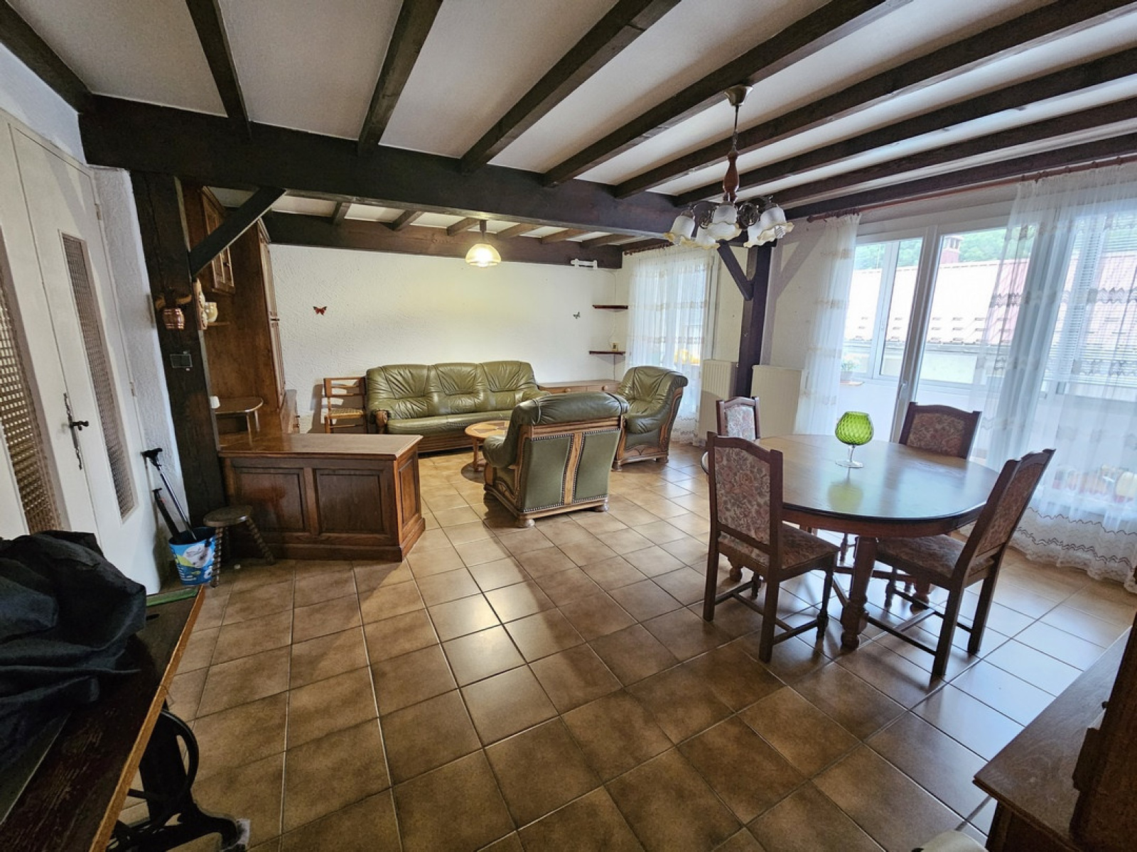 Saint-Claude, secteur Gare, appartement type F3 de 75 m² avec balcon/loggia. Hall d'entrée, cuisine intégrée, séjour de 31m² avec accès sur balcon/loggia, 2 chambres, salle des bains, toilettes. Cave et grenier. L'appartement est bien entretenu, et à bénéficié de nombreux travaux récents : fenêtres en PVC double vitrage avec volets roulants intégrés, mise aux normes du tableau électrique, cuisine, peintures. Chauffage individuel au gaz. Faibles charges de copropriété : 410€/an. Contact : Alexandre Saillard : 06.83.83.41.75