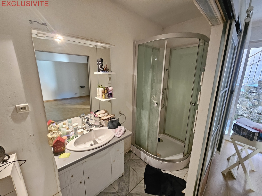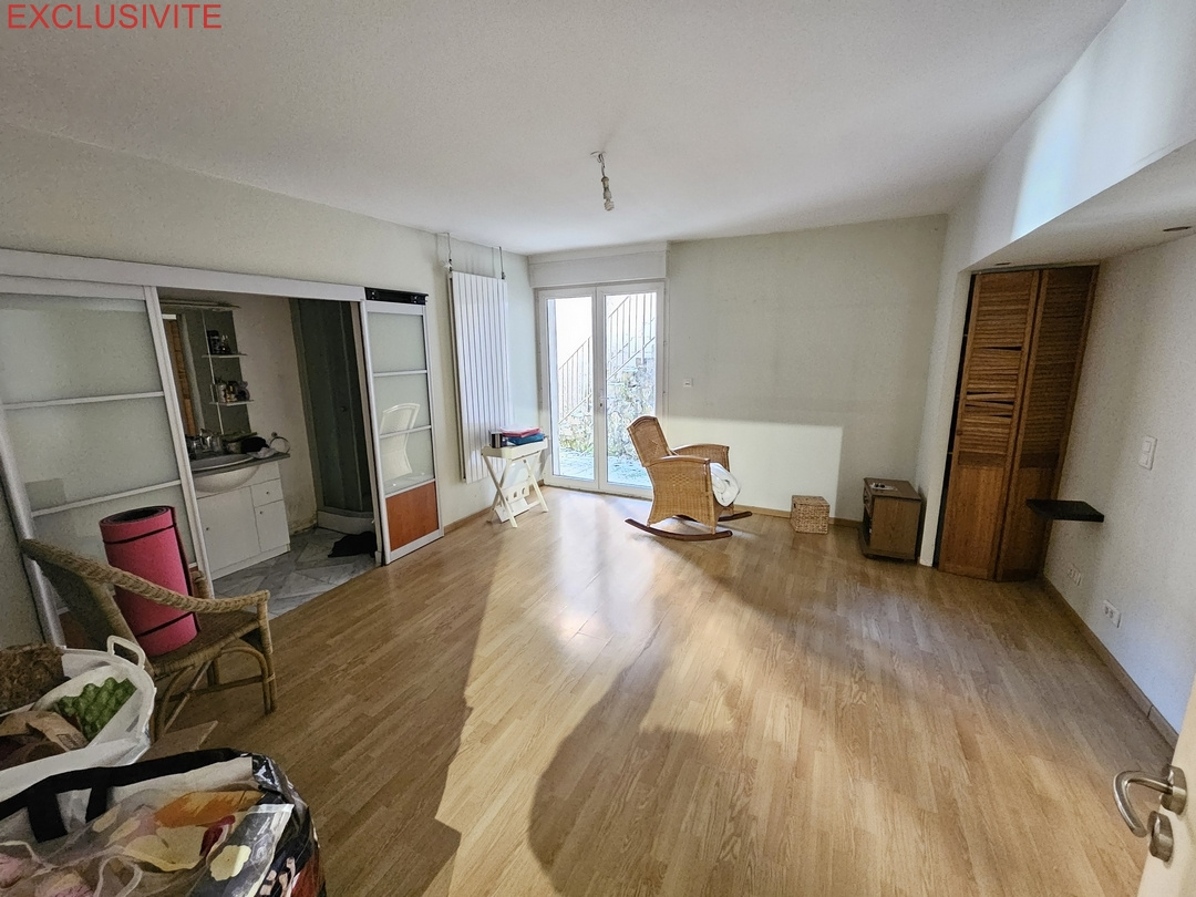 rdc : une chambre avec salle d'eau privative, cave, 2 garages