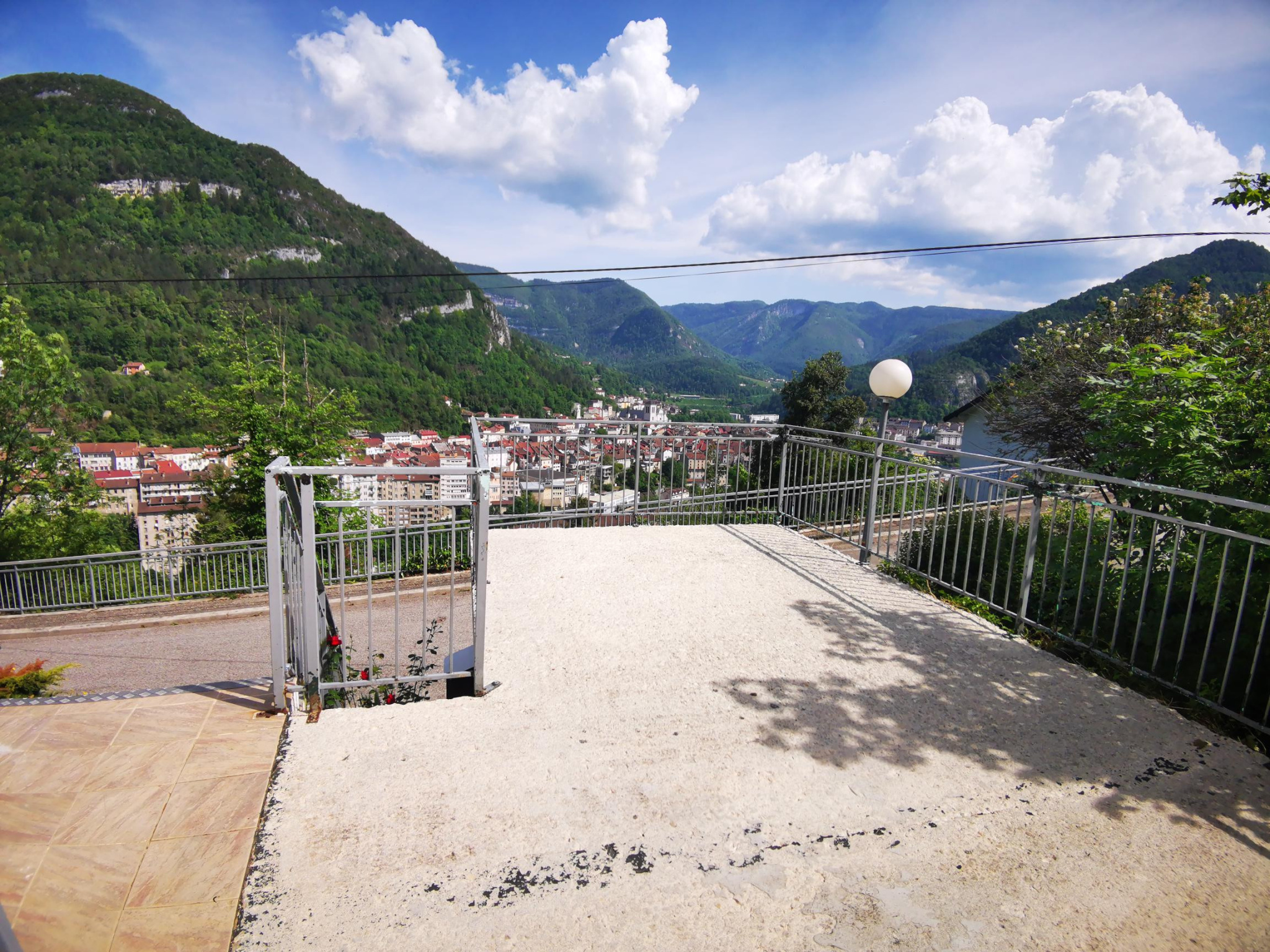 Sur les hauteurs de Saint-Claude, maison avec superbe vue composée au premier étage d'un hall d'entrée, cuisine, séjour avec balcon, 2 chambres, salle d'eau, toilettes. Au niveau inférieur, un bureau/salle de jeux, une chambre, salle d'eau, cave. Garage indépendant. Terrasse Contact : Alexandre Saillard : 06.83.83.41.75