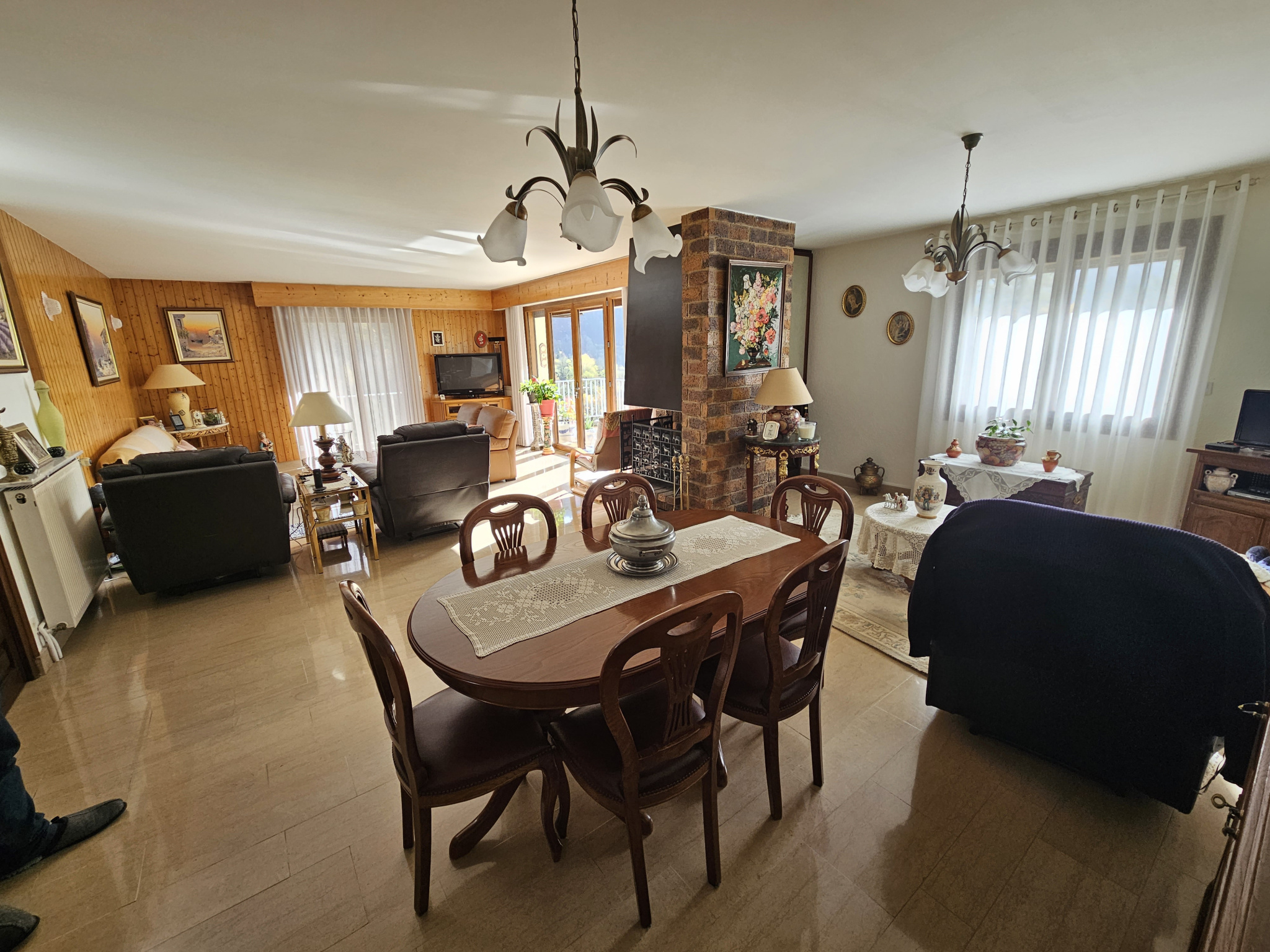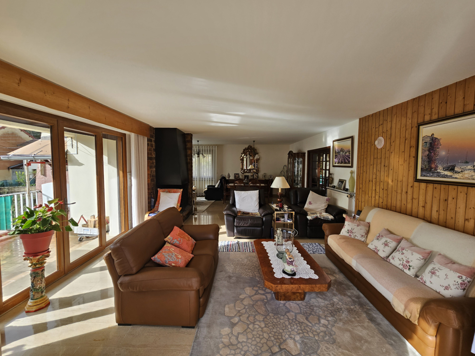 Saint-Claude, belle maison spacieuse avec jolie vue et bel ensoleillement. RDC : Hall d'entrée, une grande chambre de 19 m², salle d'eau, une pièce de 19m², buanderie, cave, garage double. 1er étage : hall, cuisine intégrée avec accès sur balcon et terrasse, superbe séjour de 50m² avec cheminée et accès sur balcon et terrasse, 3 chambres d'environ 13 m², wc, salle de bains. Terrain clos de 1000 m² en pente avec four à pain indépendant, serre de jardin, poulailler. la maison est bien entretenue. La toiture à été refait en 2010, les fenêtres ainsi que les volets roulants de l'étage ont étés remplacé en 2022. Contact : Alexandre Saillard : 06.83.83.41.75