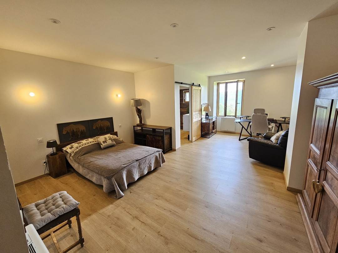 Laissez-vous séduire par cette authentique ferme en pierre restaurée avec beaucoup de charme située sur les hauteurs de Pratz, en sortie du village, tout proche nature. Au rez-de-chaussée : Grande cuisine / salle à manger avec cuisinière à bois, salon avec poêle à bois et accès sur terrasse, grande salle de bains, cellier/buanderie, anciennes étables. 1er étage : une grande chambre avec dressing intégré, une seconde chambre avec salle d'eau privative. Grange de 140 m² avec superbe charpente en chêne. Une chambre d'ami dans la grange. Combles : grand grenier aménageable possibilité de créer 2 chambres et une salle d'eau (isolation déjà réalisée) Parc clos de 3250 m² (constructible) avec magnifique vue. Nombreux travaux récents : toiture , menuiseries, électricité, isolation, radiateurs électriques.. La maison est également équipée de panneaux solaire photovoltaïques 6KVA. Contact : Alexandre Saillard : 06.83.83.41.75